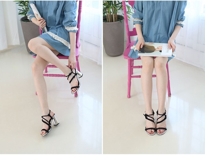 商品名:サンダル レディース 太ヒール チャンキーヒール キラキラ 2018 春 ファッション 靴 婦人靴