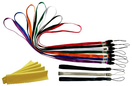 ColorYourLife Bundle of 10 pcs Colorful Neck Strap Band Lanyard (7 long and 3 short) for Camera Cell phone ipod mp3 mp4 USB Flash Drive ID card badge and other Electronic Devices + Cleaning Cloth – Assorted Colors