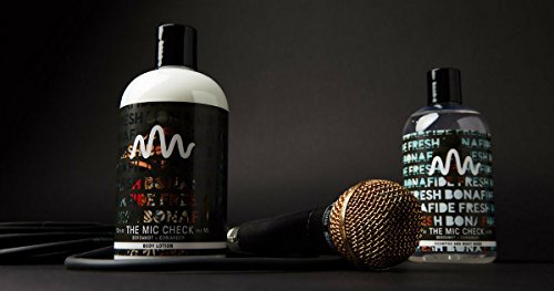 About to step up? Need life a little louder in the headphones? Come correct with a Mic Check! The Mic Check blends an uplifting and energizing Bergamot scents contrasts bittersweet notes with warm, musky notes while coriander adds a woodsy touch. Always kick things off with our The Mic Check shampoo and body wash to provide the right refreshing foundation. After months of developing our custom formulation, The Mic Check delivers a non greasy moisturizing experience to help combat skin dullness for a fuller look. Because the product leaves no greasy feel, it absorbs quickly leaving behind the invigorating scent. That's what we mean by Bonafide Fresh. Apply to hands, body and feet. Keep it smooth. Reapply as needed.Feature