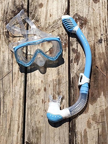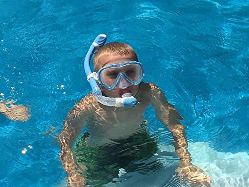 WACOOL Snorkeling Snorkel Package Set for Kids Youth Junior, Anti-Fog Coated Glass Diving Mask, Snorkel with Silicon Mouth Piece,Purge Valve and Anti-Splash Guard.(SkyBlue)