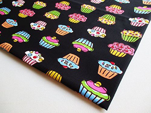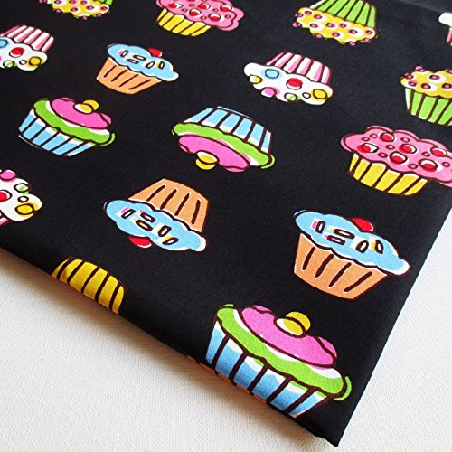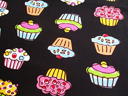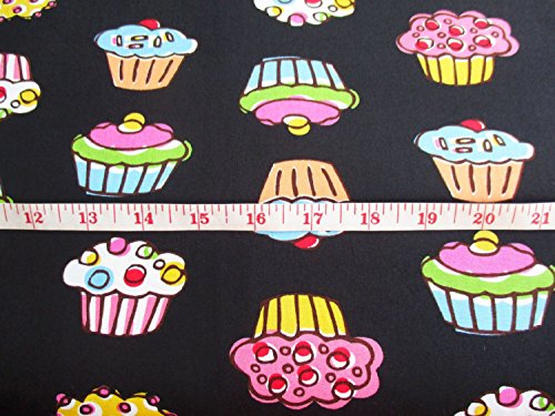 Cupcake Festival, Breakfast Tea in Paris, Strawberry Sweet cake on Black 36 by 36-Inch Wide (1 Yard) (CT525)
