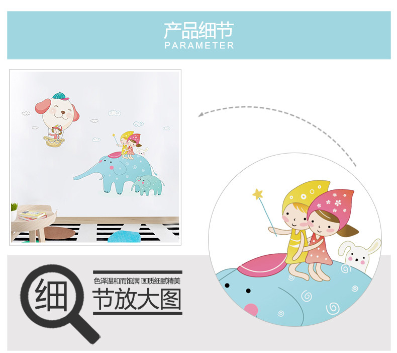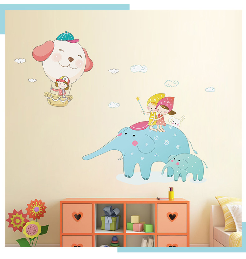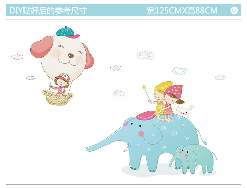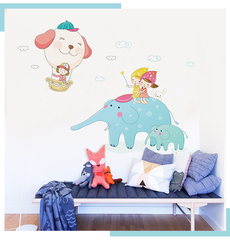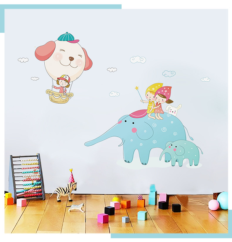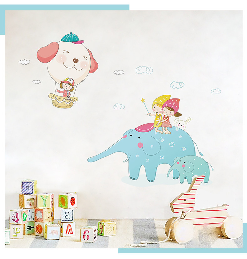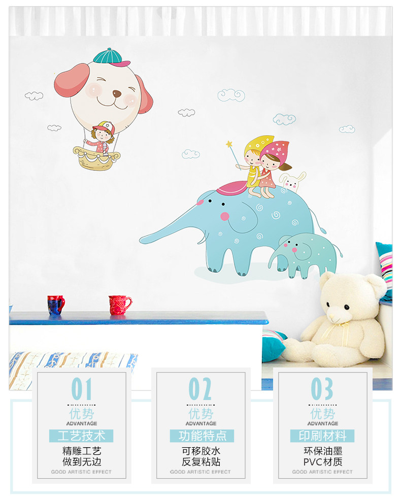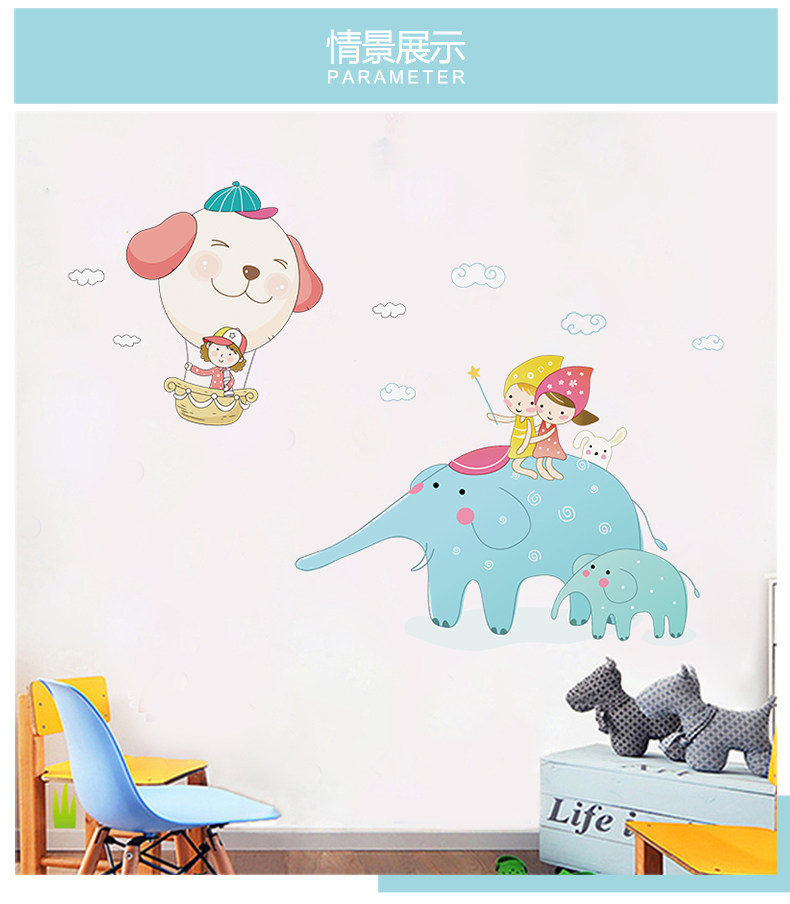 卡通大象贴图幼儿园教室装饰品儿童房间墙上贴画客厅卧室自粘墙贴