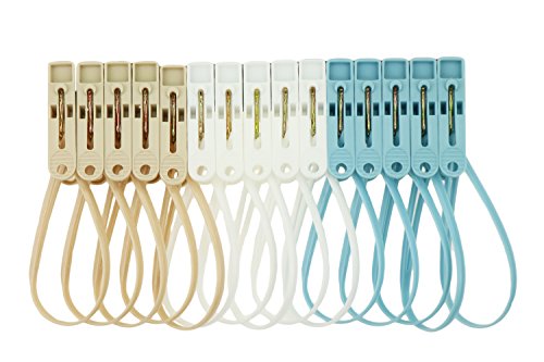 Pack of 15 Clothespins with Fixed Rope for Hanging Clothesline & Windproof Hanger