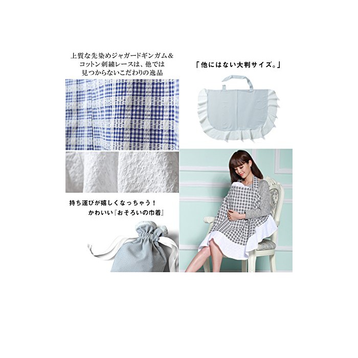 【대인기!】에이프런 타입의 대형 수유 케이프 (수납용 건착 파우치 부착)