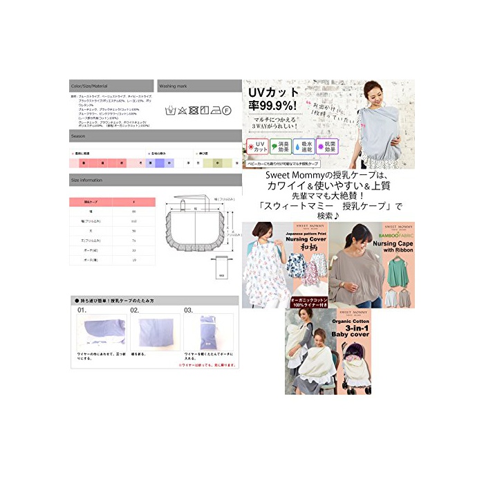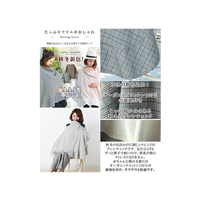 원본상품명: Sweet Mommy 授乳ケ?プ 大判 日本製ソフトワイヤ?入り 360度安心 春夏カラ?はコットンレ?スフリル 秋冬カラ?はコットン裏地 ポ?チ付き ナ?シングケ?プ ギフトにも 意匠登??み