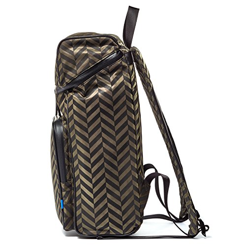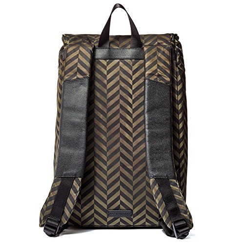 Product Description A structured Uri Minkoff backpack in herringbone-printed nylon. Welded zips at the front pouch pocket and top flap. Lined interior with a padded laptop sleeve and 2 zip pockets. Locker loop and padded, adjustable shoulder straps. Dust bag included. 0