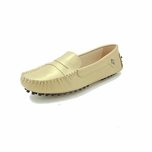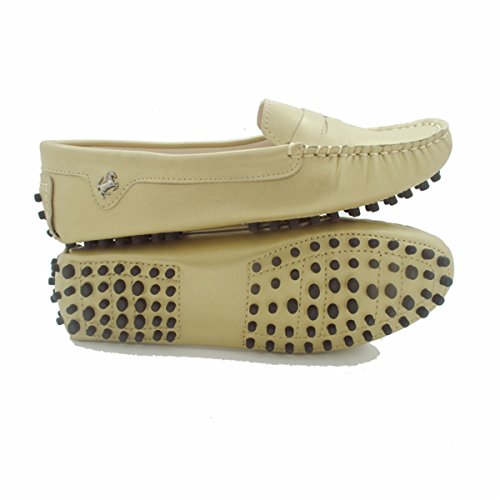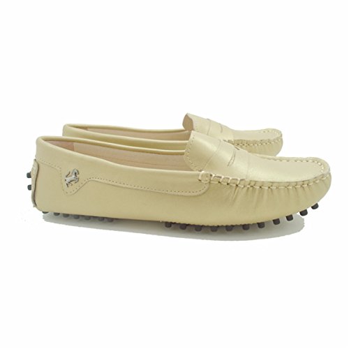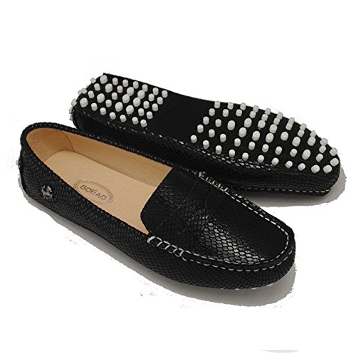 These chic loafers are perfect for driving and anything that you wish to do in complete comfort and in style. The flats were crafted in China in soft nice quality leather with great tone hardware. The shoes feature an embossed GOEAO's logo and iconic rubber pebble soles which make driving absolutely comfortable and safe - as your feet won't slide off the pedals. There is belt detail on the front of the shoes and on the sides with a silver tone buckle. The special stitching adds sophistication to the look of these great flats! They have never been worn, make them yours today!