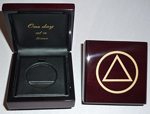 Alcoholics Anonymous AA High Gloss Wood Coin Medallion Box One Day At A Time