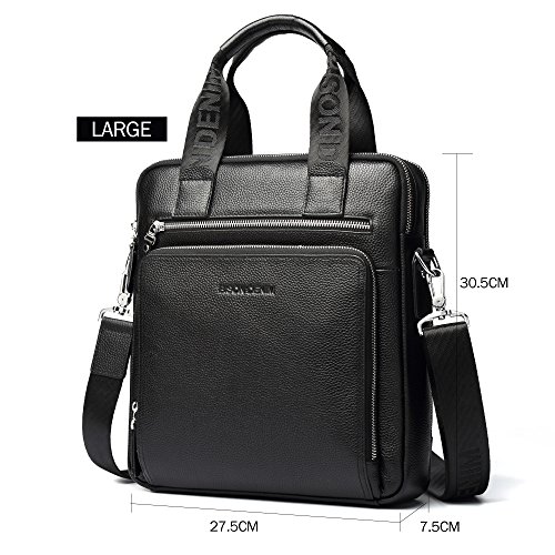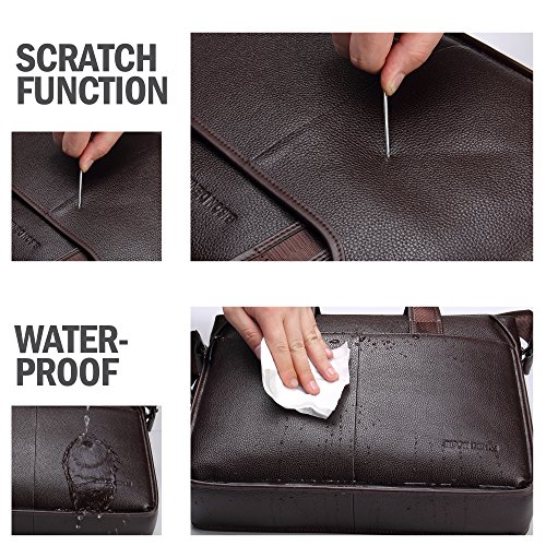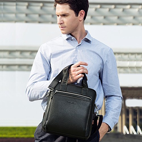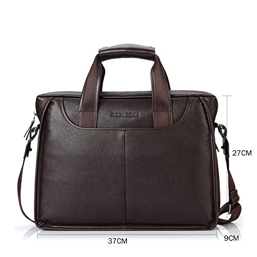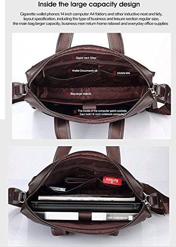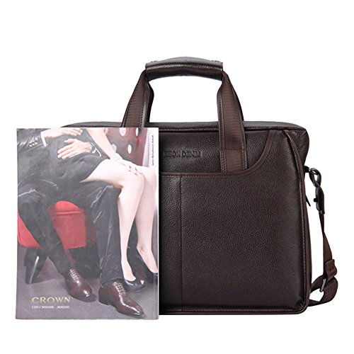 -. Feature : Material: It is a functional business messenger bag for men made from genuine cowhide leather which speaks a ton about its quality. The functional business messenger bag has a polyester lining stitching that boosts its functionality and longevity. / Dimensions(HxLxW): 12inch x 2.95inch x 11.22inch,tote length 5.11inches / Multi-Pockets: easy access front 2 zipper pockets for Phone tablets or notes. And Interior padded pockets,1 padded laptop sleeve for your laptop ,1 back zipped pockets, ,1 mobile phone holder,1 wallet holder,2 small sleeves for your important business items such as phone,wallets,2 large zipper pockets for the sercurity. More massive protective materials,protect your laptop perfectly / • For your carrying comfort • Carry handle with pleasant grip for easy carrying in hand • Detachable shoulder strap, adjustable in length. Two main compartments and additional pockets outside and inside • An outside zip pocket right at your side; for things you want to keep close for safety, but still have easy access to while on the go. / Multifunctional: Durable leather laptop handle can be used as a hand bag , This bag can used as tote bag/ handbag/ messenger bag/ shoulder bag/ briefcase, This bag is perfect for your business travel and vacation,Take this bag to work and/or school to use for your laptop, notebooks, magazines, books, folders, cell phone, wallet, etc.