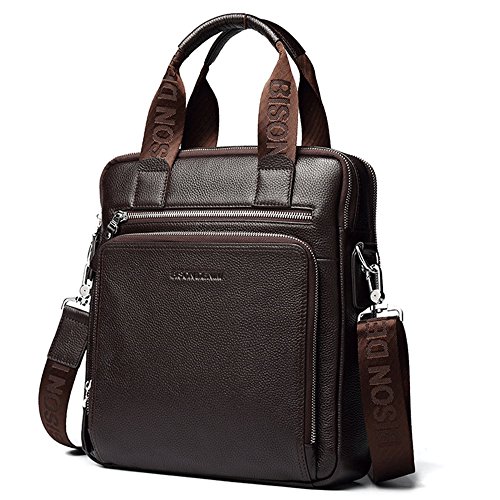 -. Title : BISON DENIM Mens Classic Leather Briefcase Laptop Shoulder Messenger Bag Bussiness Tote Handbags
