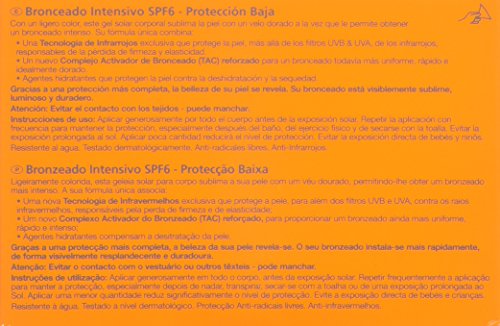 A lightly-tinted. tan deepening body gel. Formulated with RPF complex to neutralize free radicals. Offers an instant glow to skin in seconds. Infused with moisturizers to protect skin from dryness and flaking. Achieves a soft and long-lasting tan. Can be applied over a medium protection product for a beautifying effect.Feature