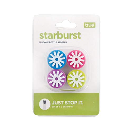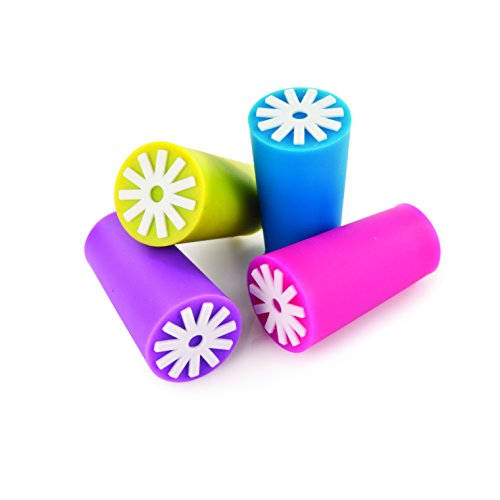 - CORK SHAPED bottle stopper set contains one each of purple, blue, pink, and yellow