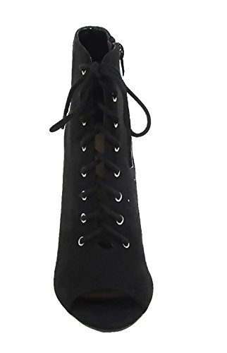 Delicious Women Nubuck Peep Toe Lace Up Thick Heel Bootie MVE Shoes