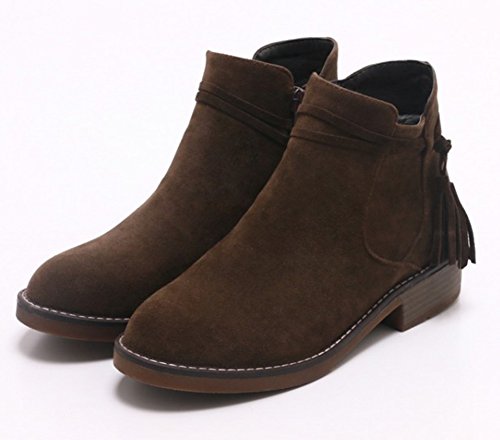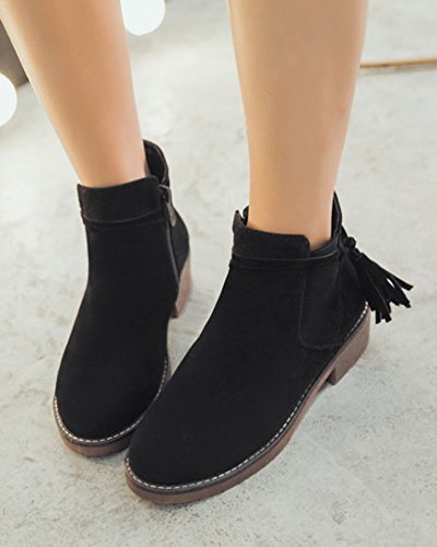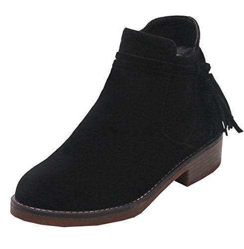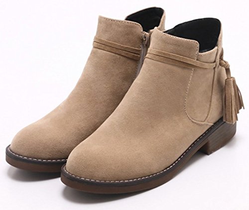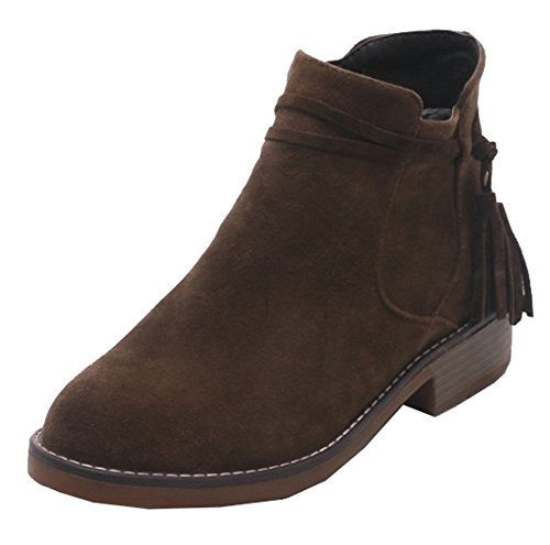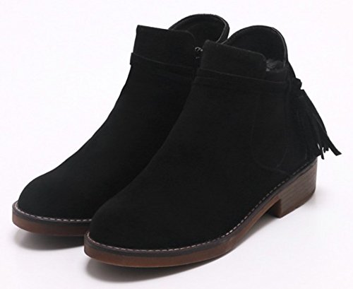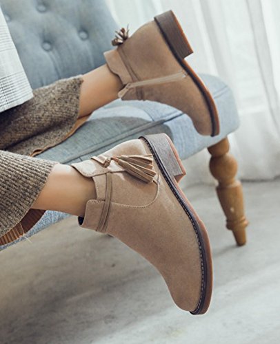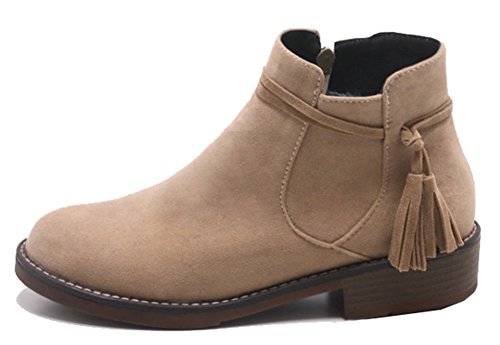 Binding : Apparel Product Description This pair of shoes is for women, girls, young ladies and office workers. You will look sexy and chic when wearing them. The heels measure 1.2 inches. You will feel comfy in their low heels. So you will not feel too tired when walking with them. The pair of shoes features zipper on the side vamp upper. The design of round toe will make you look sweet. You will look chic in their decoration of fringe. The sole is made of good rubber. You will feel comfortable in their soft bottom. They are of high quality and durable. Come on and take them away! 0