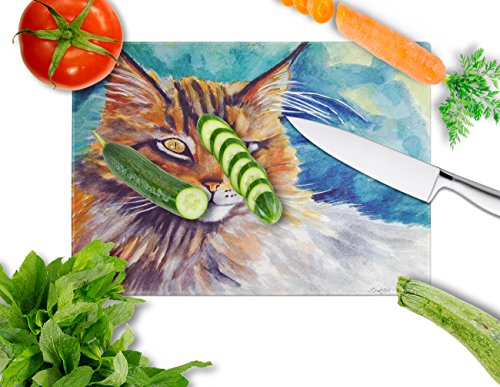 Caroline's Treasures 7421LCB "Maine Coon Cat Watching you" Glass Cutting Board, Large, Multicolor