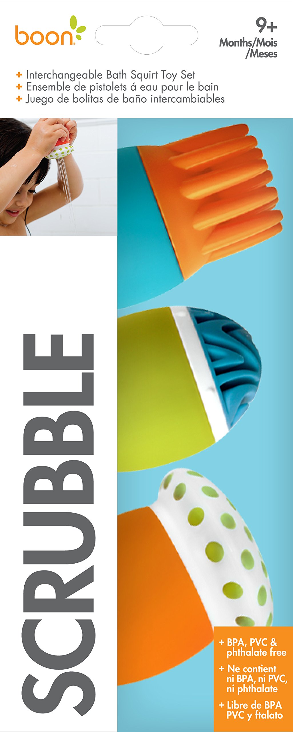 Boon Scrubble Interchangeable Bath Toy Squirt Set Orange