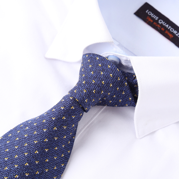 1. 네이비 바탕에 노란색 삼각도트가 포인트인 기본 넥타이