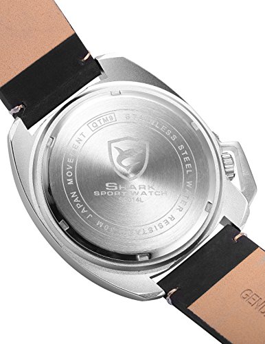 -. Title : SHARK SH450 メンズ クォーツ ブラック クレイジー ホース レザー ストラップ ホワイトダイヤル 日付表示 腕時計