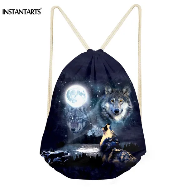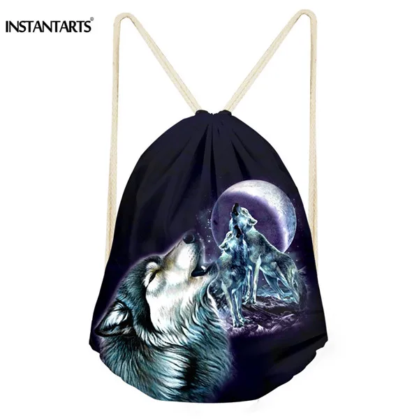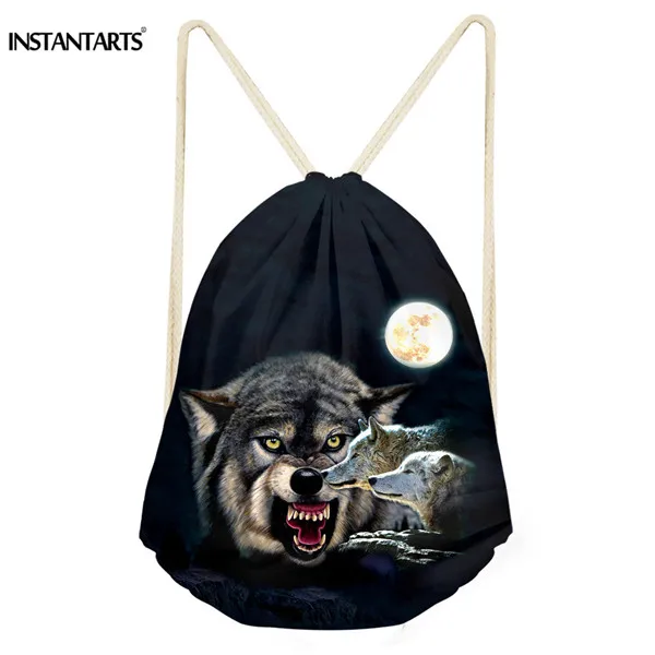 Pattern name:animal wolf printing gym drawstring bag sports folding backpack