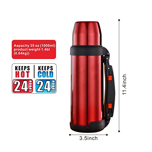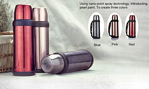 Luxanna Vacuum Insulated Water Bottle, Double Wall Stainless Steel Leak Proof Sport Thermos Flask with Invisible Strap for Cold or Hot Drink, 1000ml / 35oz (Red/Pink/Blue)