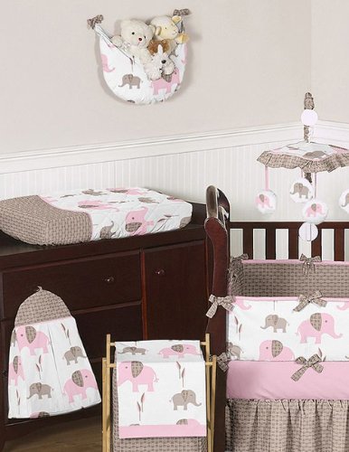 -. Title : Sweet Jojo Designs Modern Pink and Brown Mod Elephant Baby Girl Bedding 9pc Crib Set