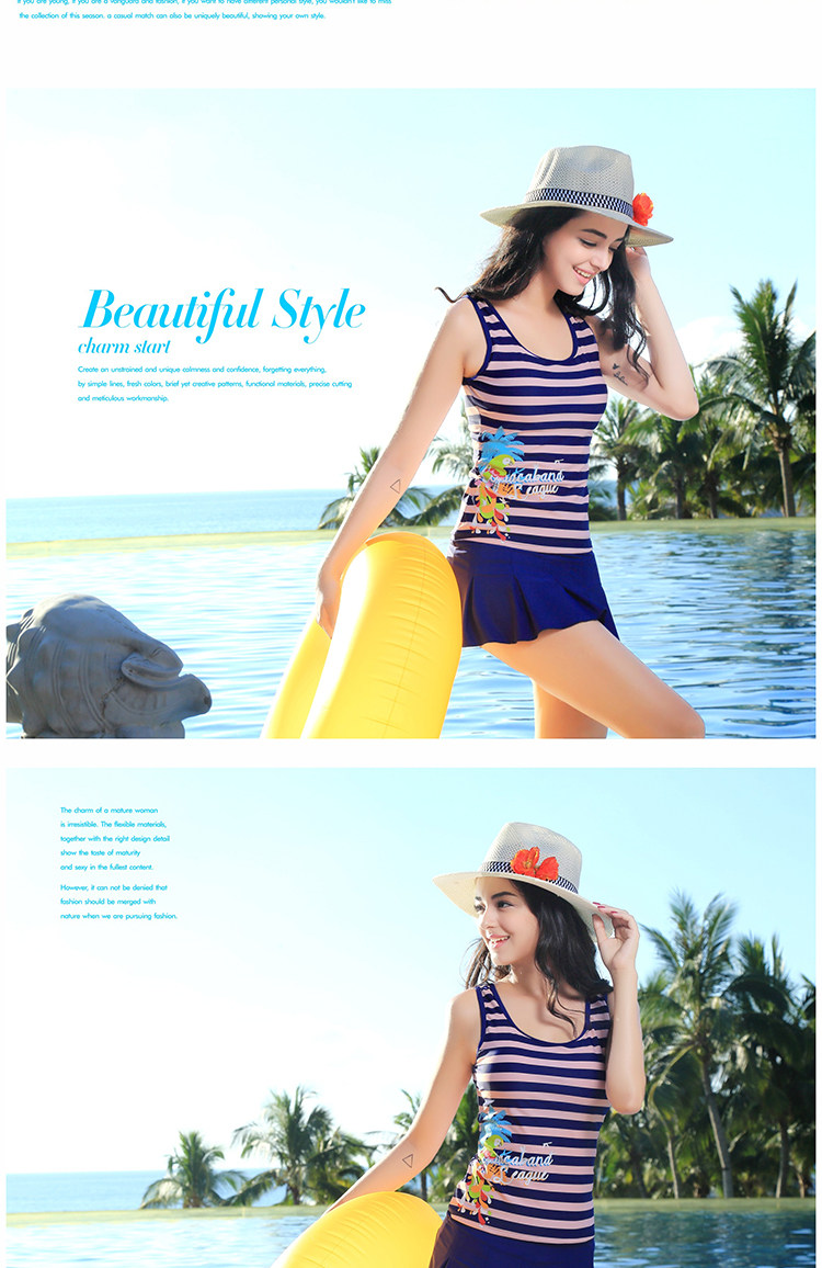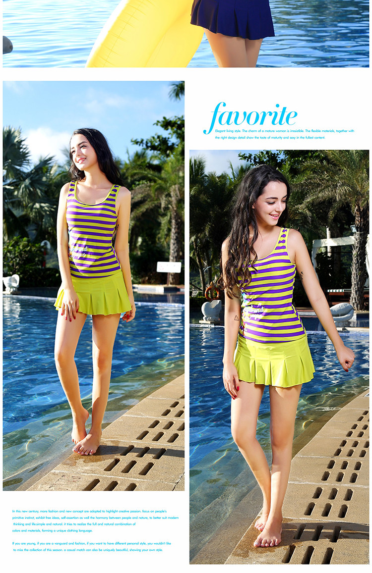泳衣女新款裙式分体三件套背心款遮肚保守学生温泉度假泳衣