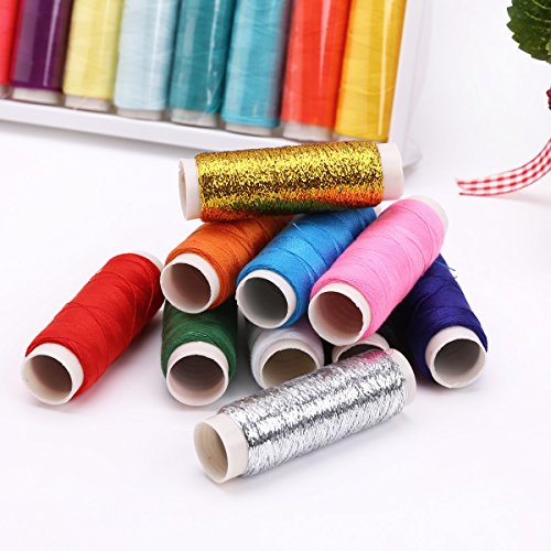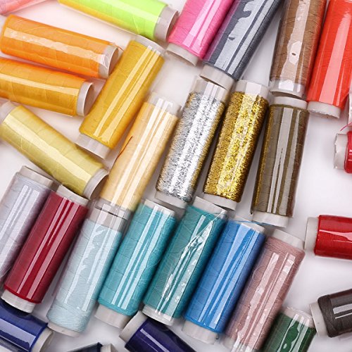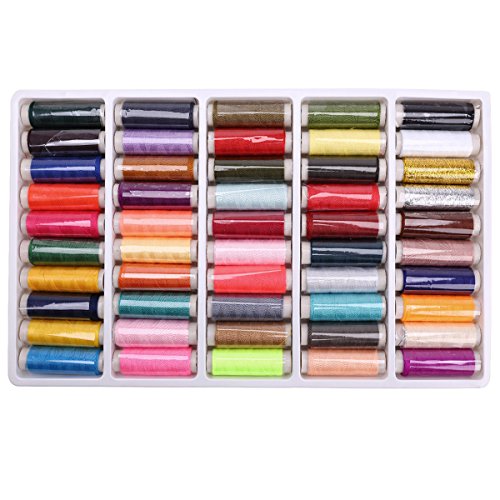 -. Feature : Material: Polyester / Color : 50 Random colours.( Multi Colors) / Each Spool contains approximately 137 metres(150 yards) of material, Spool size: 34.5 x 22.8 x 2.5cm / Package included: 1 Sets of 50 Colors Spools Floss Threads( Multi Colors) / Features : New and high quality The thread is strong and durable 50 colors can meet your need. This thread can be used for both hand and machines. Great for sewing decoration, crafts, clothes, dress making, etc.