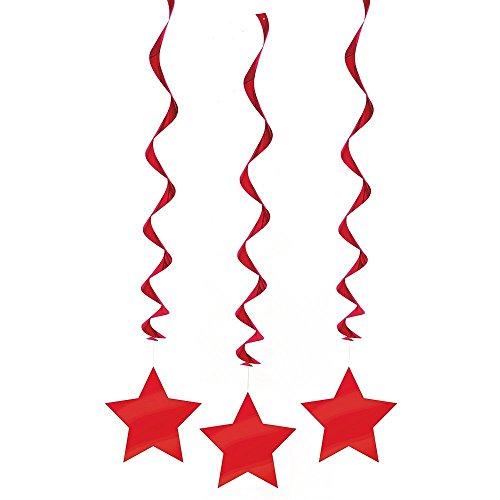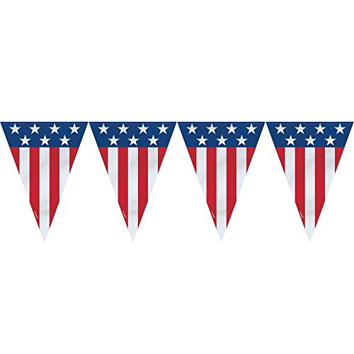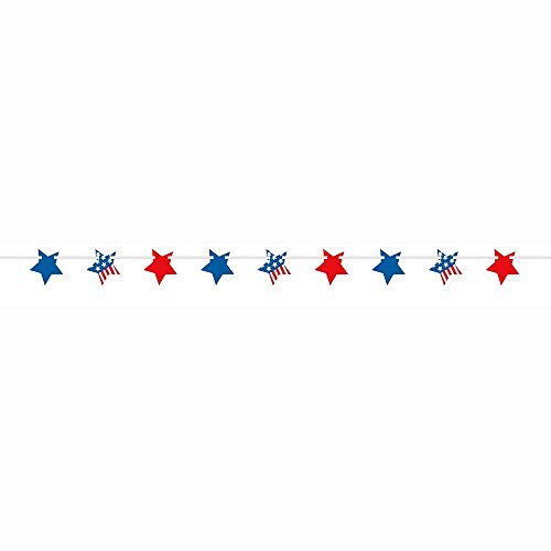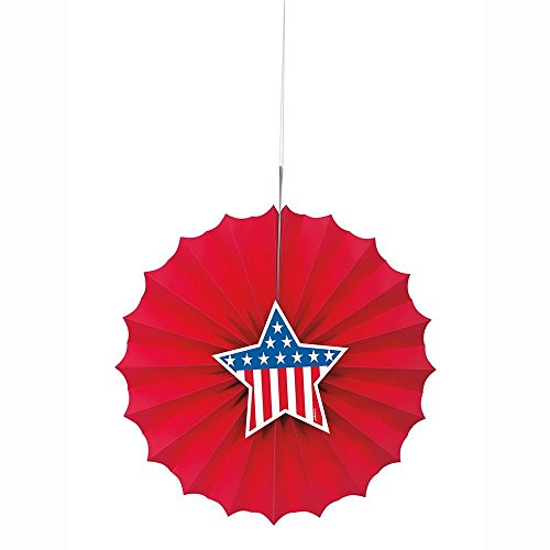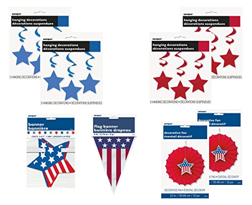 Patriotic Decorations Party Pack Bundle with 9 Flag Banner, Blue & Red Hanging Stars, 6 Star Banner & 12 Fans