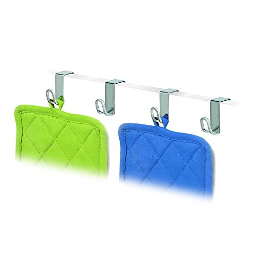 - Hooks securely fits over any cabinet door in kitchens, baths, and laundry rooms