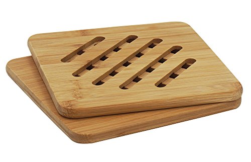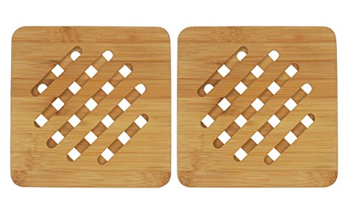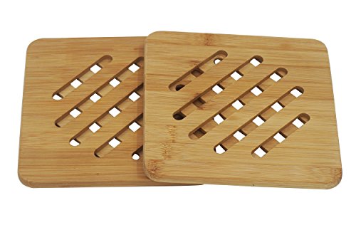 Bamboo Trivet, Bambri Kitchen Bamboo Hot Pads Trivet, Heat Resistant Pads Teapot Trivet, Square(Pack of 2)