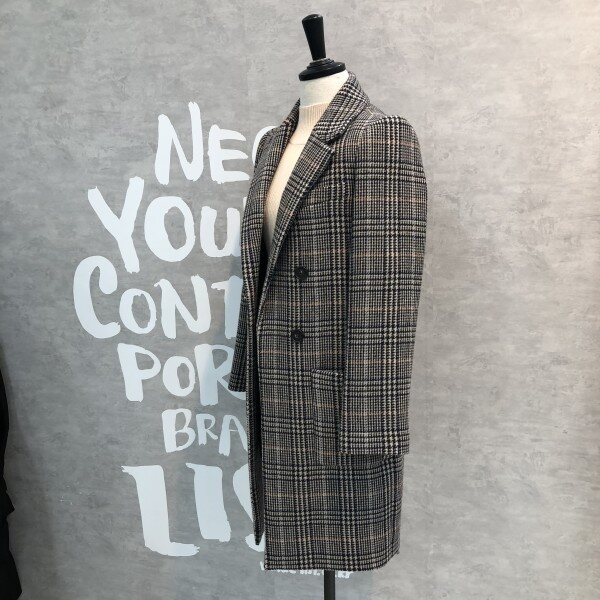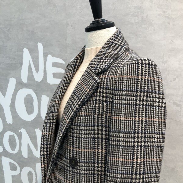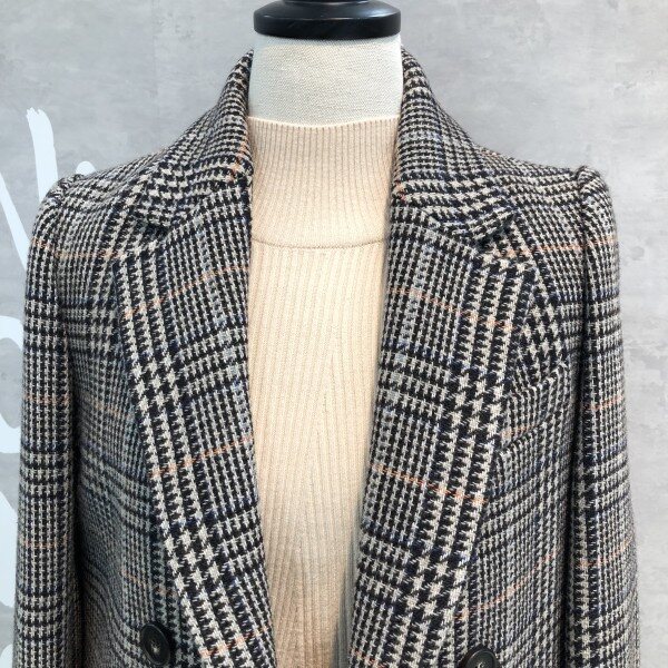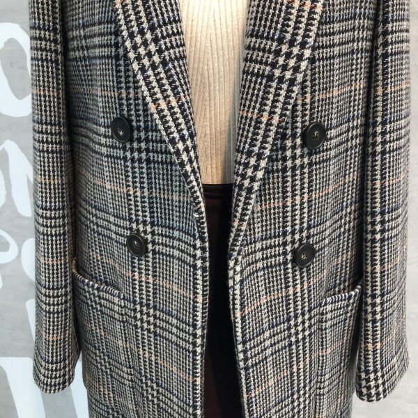 더블 버튼 실루엣에 글렌체크 패턴이 트렌디하고 클래식한 울 블렌드 재킷입니다