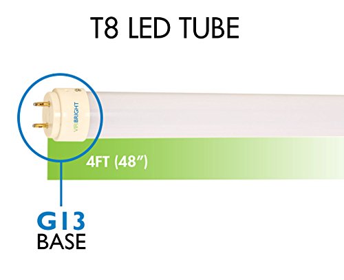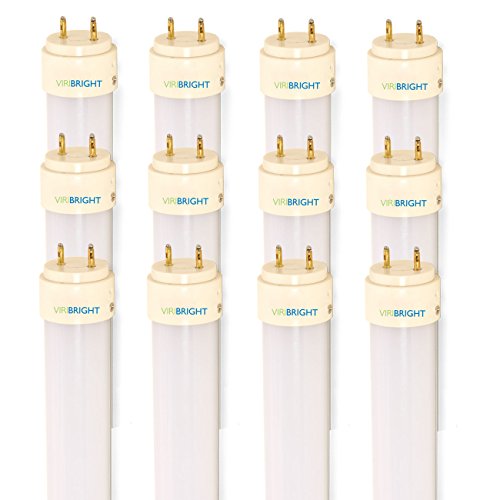 Viribright 12 Pack T8 LED Tube Light 4ft 48", 20W, 4000K Kelvin Cool White, 2000 Lumens, Ballast Bypass, 40 Watt Fluorescent Replacement Lamp, UL Single-Ended Power