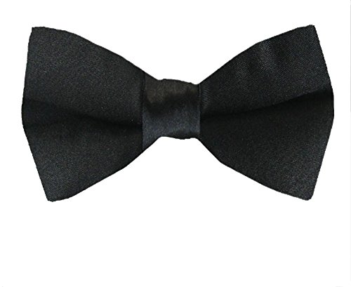 (Buy Your Ties)/Accessories/Ties/DIRECT FROM USA/Black - Pre-Tied Solid Silk Satin Bowtie