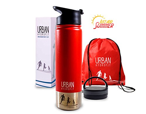 -. Feature : ● ● THE BEST CONSTRUCTION: The sleek-looking URBAN HYDROFIT 22 OUNCE INSULATED Water Bottle is double walled vacuum insulated, keeping drinks cold for up to 24 hours or warm for 18 hours (piping hot for 6 hours); no abrupt temperature change is on the outside of the container while it keeps fluids ultra hot or cold inside; the bottle is sweat-free, so your hands stay dry; keep hydrated at home, work, or play, indoors or outdoors, as it holds hot and cold liquids for a long time; / ● PREMIUM MATERIALS USED: The URBAN HYDROFIT 22 OUNCE INSULATED CANTEEN is made from premium gauge 18/8 stainless steel, so it will not rust or crack; the outside of the bottle has a powdered coating in 4 color options that are colorful, durable, and red; the screw-on, leak-proof lid with a built-in handle and the extra sports lid are made of sturdy ABS plastic, so all parts are BPA free and lead free; it is recommended to hand wash only; / ●● GREAT BONUSES ADDED: Not only does the URBAN HYDROFIT 22 OUNCE INSULATED Water Bottle include a long-lasting, unbreakable bottle with a wide mouth to use as a mug for hot drinks or cold beer and a built-in carry handle lid, but it also has a screw-on sports lid with a small opening to use during rigorous activities or walking plus a matching drawstring sack to carry keys, wallet, cell phone, and the bottle; it's the perfect gift for outdoor and indoor use; / ● ● LifeTime GUARANTEE: Because we know our product is top quality, we offer a Life Time guarantee; if you are not completely satisfied with our bottle, please contact us for a replacement or full refund, no questions asked; BUY WITH CONFIDENCE the URBAN HYDROFIT 22 OUNCE INSULATED CANTEEN with CARRY HANDLE LID and EXTRA SPORTS LID in 4 COLOR CHOICES plus a DRAWSTRING SACK; it's ideal for those who want to stay hydrated throughout the day. / ●● HIGH QUALITY INSULATED HYDRATION BOTTLE: The URBAN HYDROFIT 22 OUNCE INSULATED Water Bottle is the best choice when you want to keep hot drinks hot and cold drinks cold for long periods of time; measuring 10 inches tall with its carry handle lid and 3 inches in diameter, the leakproof bottle comes with an extra sports lid and a matching drawstring sack; it is available in BLACK, BLUE, RED, or GREEN and arrives in a designer gift box; the company logo and name are on the bottle and bag;