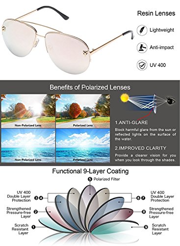 POLARIZED SUNGLASSES ▶ 97% of UV rays are blocked by 9 layers of coating. Anti-glare and strong lights filter. Besides, the coating enhances contrast, which provide you sharp and high-definition vision.