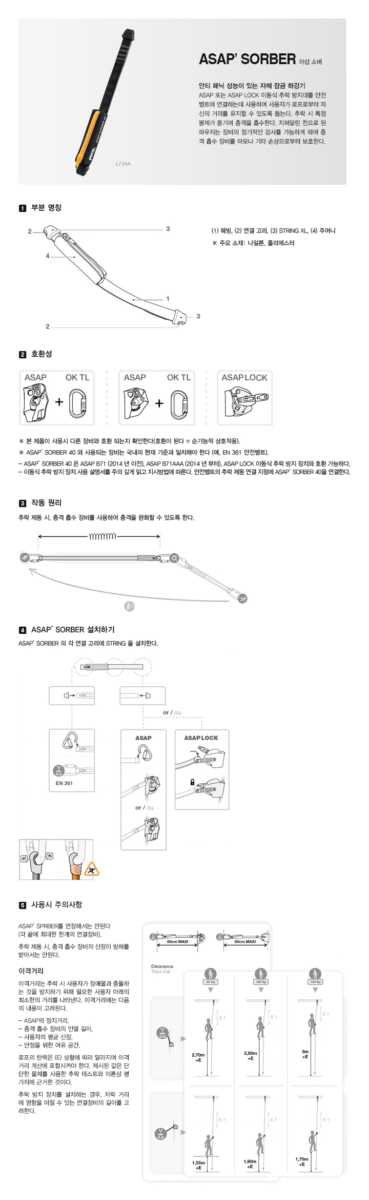 ASAP 또는 ASAP LOCK 이동식 추락 방지대를 안전벨트에 연결하는데 사용하며 사용자가 로프로부터 자신의 거리를 유지할 수 있도록 돕는다. 추락 시 특정 봉제가 뜯기며 충격을 흡수한다. 지퍼달린 천으로 된 파우치는 장비의 정기적인 검사를 가능하게 하며 충격 흡수 장비를 마모나 기타 손상으로부터 보호한다.