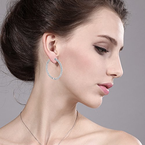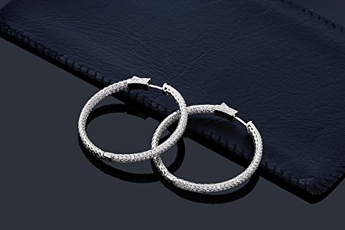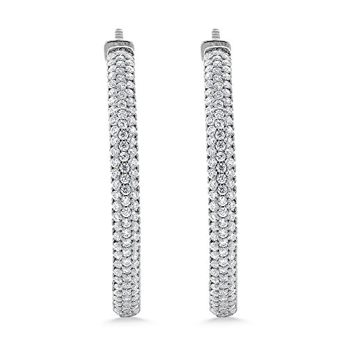 MAKE YOUR DAY SPECIAL - Beautiful and eye-catching 1.50 Inch 3-Row White CZ Pave Hoop Earrings For Women fashion statement that will make you stand out in any party or occasion.