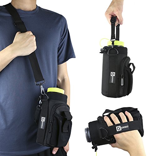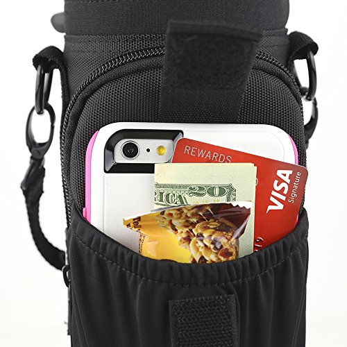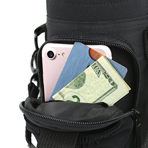 Gear Beast Water Bottle Holder Carrier with Flask Handle, Shoulder Strap, 2 Pockets for Phone, Wallet, Keys. Carry Protect Insulate Bottles Including Hydro Flask, Swell, Yeti, Camelbak, Nalgene, Polar