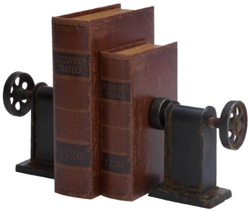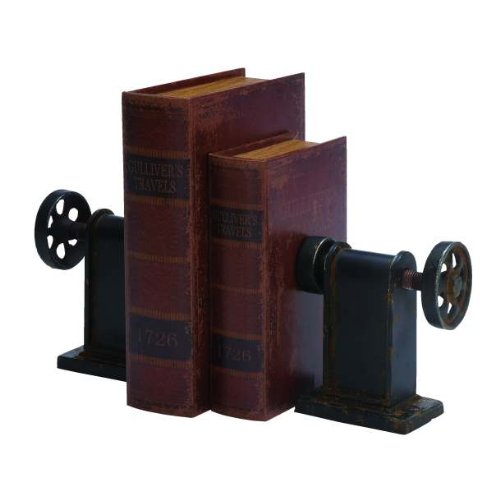 Studio : Home Decorators Collection Publisher : Home Decorators Collection Product Description Industrial chic. Rustic styling. Expertly crafted. Our set of two Industrial Bookends will add the perfect amount of interest to your desk or bookcase. Perfect for a book lover, the bookends will add character and distinguished style to your space. Update your home accents today; order now. Metal construction. Black finish completes the look. Actual size is PR 8"Hx7"W 0