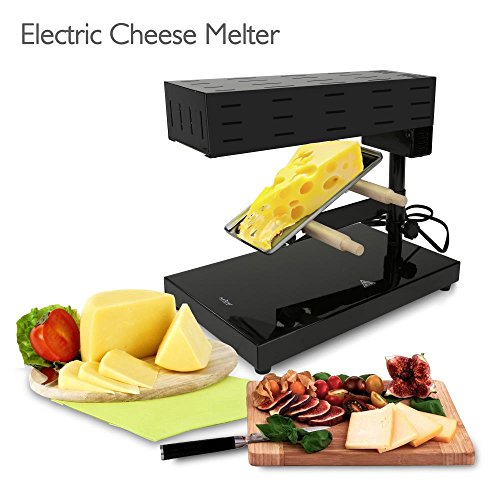 The NutriChef Cheese Raclette provides convenient & tasty food prep. Add traditional Swiss-style melted cheese to your plate with simple operation and electrical plug-in design. Use the angle adjustable grilling plate and temperature control knob to achieve the desired results. Stainless steel Raclette construction and stain-resistant housing allows for safe placement on any kitchen counter or tabletop. The Raclette Cheese Melter helps you create the perfect side dishes that your family and guests will enjoy. Warm your cheese slightly or savor melted gooey cheese goodness with NutriChef!