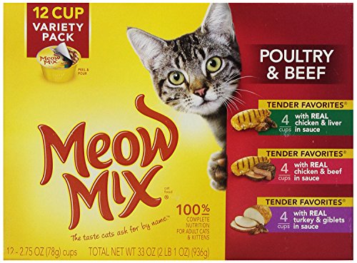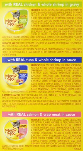 Meow Mix Poultry & Seafood Variety Pack is a mix of three unique wet food flavors your cat will love. Tender pieces made with real tuna, chicken, or salmon, each meal is irresistibly delicious and fortified for your cat's health. With wholesome ingredients and tasty flavors, no wonder cats ask for it by name!