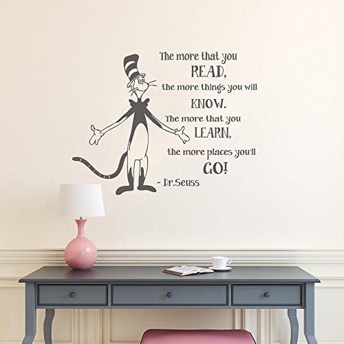 Wall Decal Decor The More That You Read - Dr Suess Vinyl Decal Quotes Wall lettering Classroom Wall Art Sticker Children Kids Wall Decals(dark gray, 21.5"h x28"w)