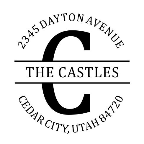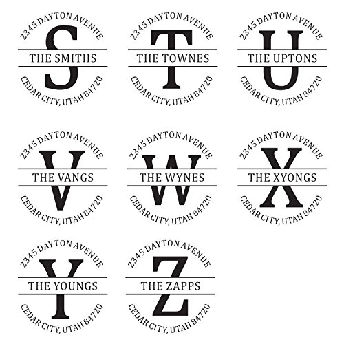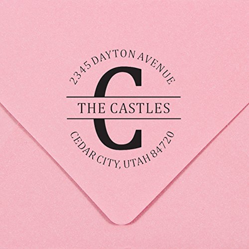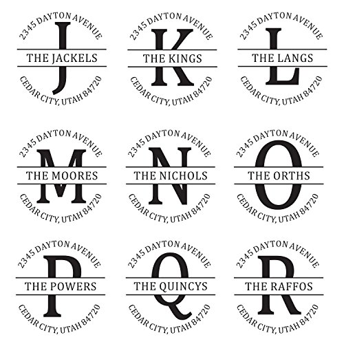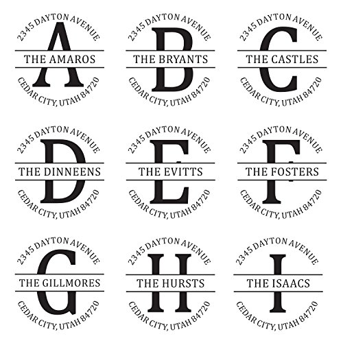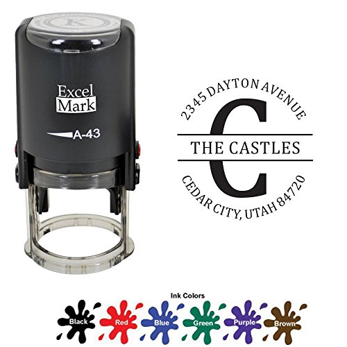 -. Feature : A custom self inking monogram address stamp personalized with your desired text in the font and style shown (*This style is not recommended if your initial is the letter E, F or H) / Self-inking design allows for rapid, repetitive stamping / Sturdy stamp mount features an open base to easily align impressions / Round impression area: 1-5/8" diameter / Available in your choice of the following ink colors: black, red, blue, green, purple or brown
