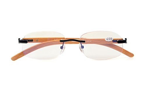 Eyekepper Computer Readers Reading Glasses Men Women Spring Hinges Wood Temple Rimless Computer Black +4.0