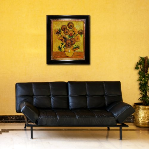 Vase with fifteen sunflowers - framed oil reproduction of an original painting by vincent van gogh