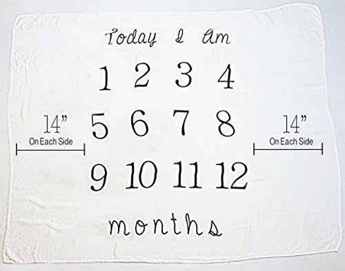 Extra large 48" x 52" size provides a 14.5" blank space on each end to lay your child child - enough space for twins on each side! Monthly numbers are 4.5" x 3".