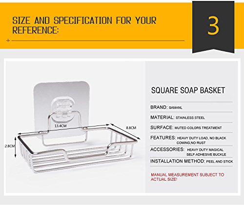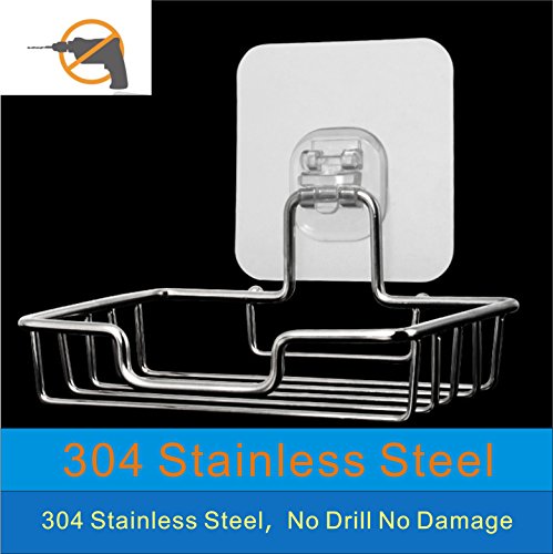 Heavy Load-Bearing 3M New Tech Stick Glue Nail Free Wall Mount Soap Dish Holder With Stainless Steel Rack