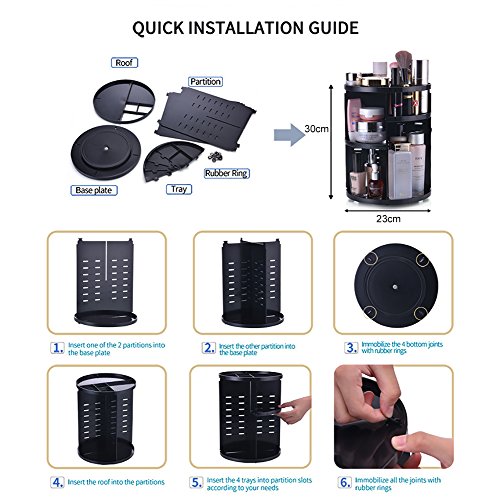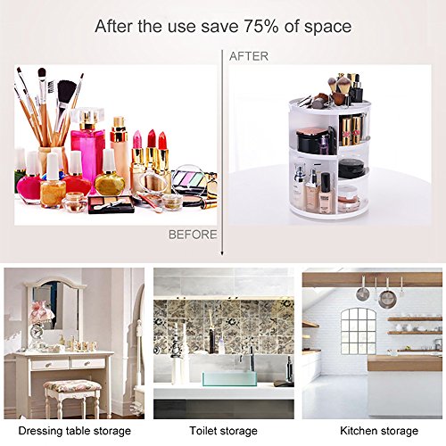 - 360 DEGREE ROTATION: The cosmetic organizer is made of high quality Acrylic. 360 Revolving angle makeup shelf help find your cosmetics easily. DIY and adjust the height as you like. Fabulous gift for family and girlfriends