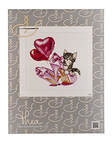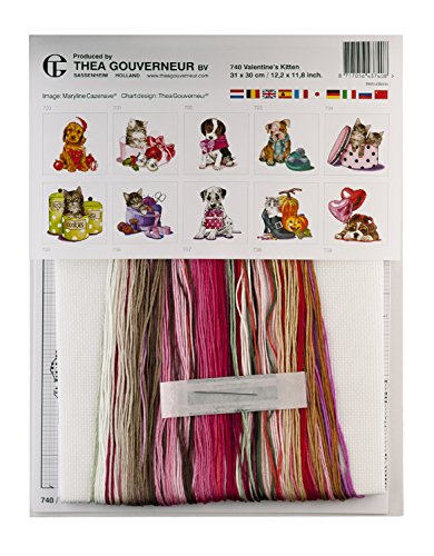 Thea Gouverneur 740A Valentine Kitten on 16 Count Aida, Counted Cross Stitch Kit, 12-Inch-by-12-Inch