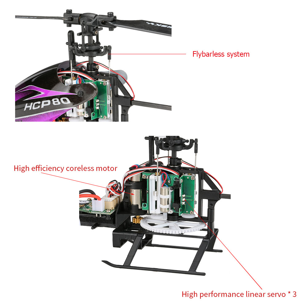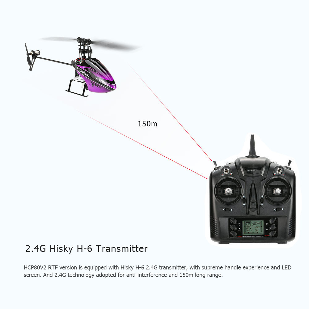 This original HISKY HCP80V2 is a fantastic mini 6CH 3D RC helicopter. It's flybarless design and built-in 6 axis gyroscope free to switch between 3D mode and 6G mode, making it can be both stable and agile perfect for 3D fun fly. And with it's mini size and lightweight, it's perfect to fly both indoor and outdoor. Great choice for both beginners and experienced pilots.
